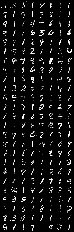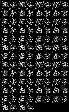 학습이 불가능해졌습니다. 200 epoch 째에 생성된 이미지는 다음과 같이 유의미한 결과를 내지 못했습니다.