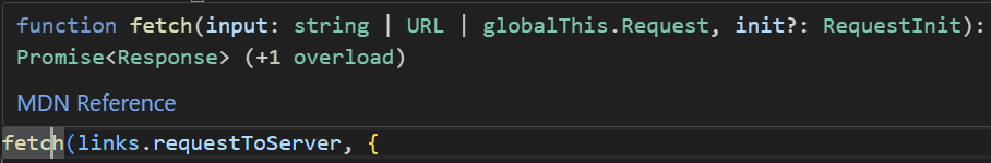 이 함수의 타입을 살펴보면, Promise<Response>를 반환값으로 받는 것을 볼 수 있습니다.