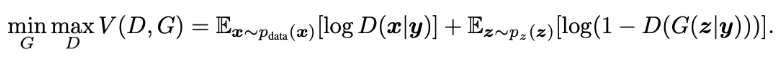 CGAN은 여기서 V(D, G)의 값을 최소로 만드는 G와 최고로 만드는 D의 적절한 모델을 학습해야 합니다.