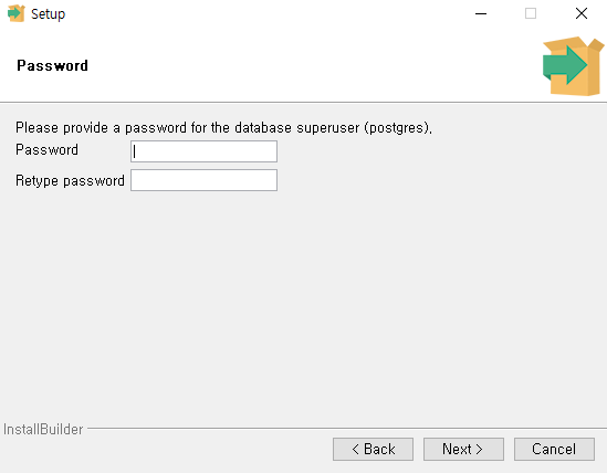다음 단계에서는 postgres라는 이름의 모든 권한을 가진 사용자의 비밀번호를 설정합니다.