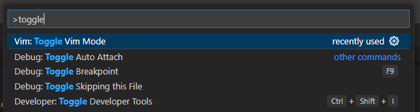 Ctrl + Shift + p 를 눌러 명령 팔레트를 열고 Vim: Toggle Vim Mode를 검색하고 실행시킵니다.