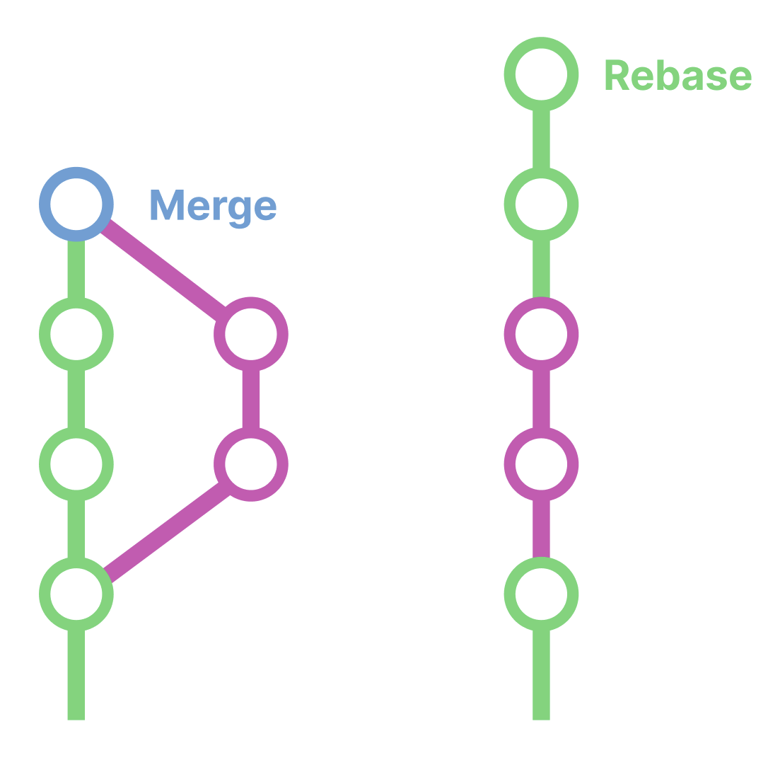 하지만 git rebase를 사용하면 merge 커밋을 추가하지 않고도 두 브랜치를 합칠 수 있습니다.