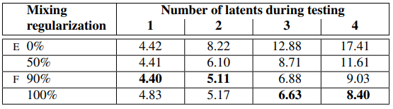 [표 4]는 매핑 신경망 f가 성능에 어떤 영향을 주는지 보여줍니다. 기존 generator와 style-based generator 모두 매핑 신경망 f가 긍정적 영향을 미쳤음을 알 수 있습니다. 또한 f의 깊이도 지각경로길이와 FID를 향상시켰음을 알 수 있습니다. 이는 본 논문에서 주장하는 것 처럼 입력잠재공간 Z의 사용이 GAN을 entangle하게 만들 수 있음을 보여줍니다.