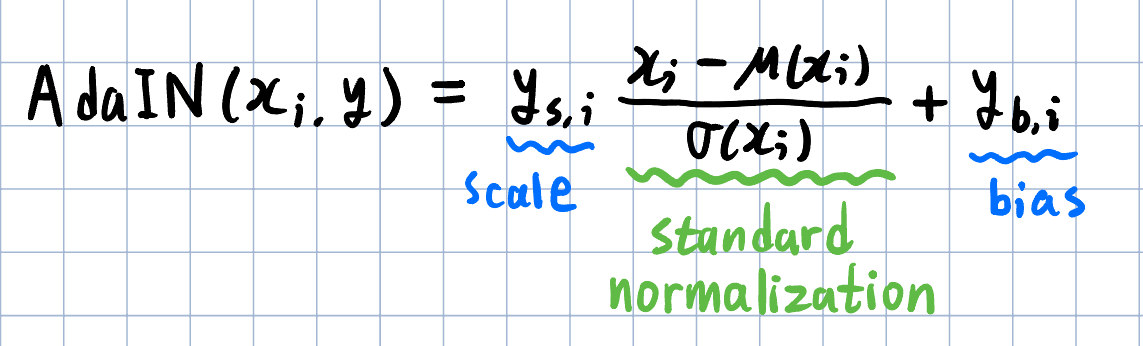 AdaIN 연산은 다음과 같이 정의됩니다.