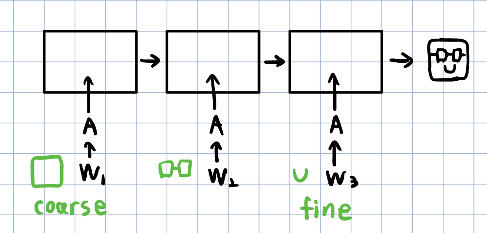 초기에 들어가는 style 일수록 더 많은 layer들을 통과하므로 그 영향이 이미지 전체에 걸쳐 적용됩니다. 이는 거시적인 style로 나타나고, coarse style이라고 합니다.