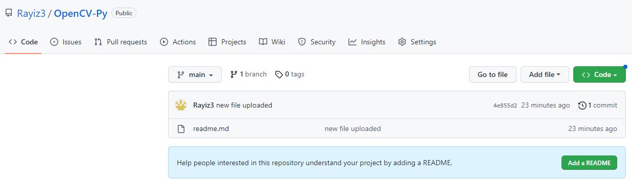 먼저 저장소로 사용할 폴더와 그 안에 있는 파일 readme.md를 생성합니다.