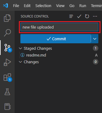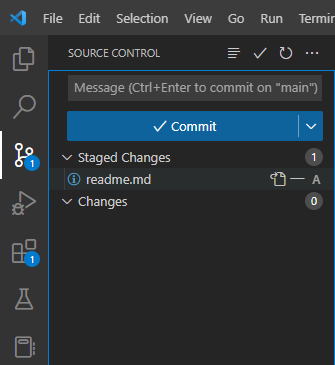 우측의 '+' 아이콘을 누르면 Staged Changes 폴더로 옮길 수 있습니다.