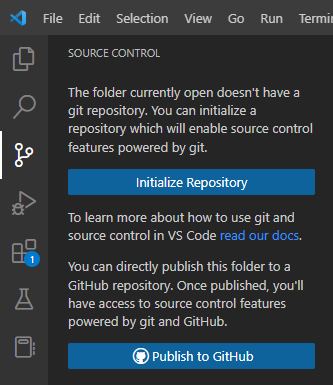 Initialize Repository를 클릭하면 이 폴더에 로컬 저장소가 생성(= git init)됩니다.