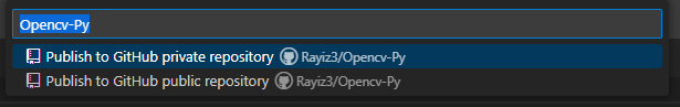 이 후 Publish Branch를 통해 지금 생성된 로컬 저장소와 연동될 github의 저장소를 지정할 수 있습니다.