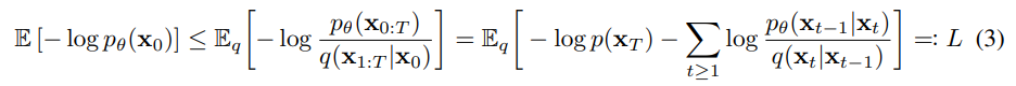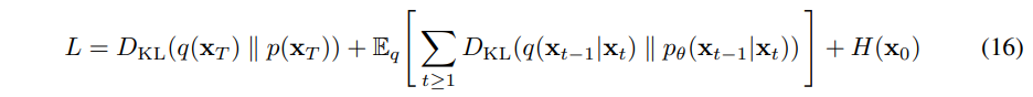 학습은 NLL(Negative Log Likelihood)에 대한 variational bound L을 최적화 하는 방향으로 수행합니다.