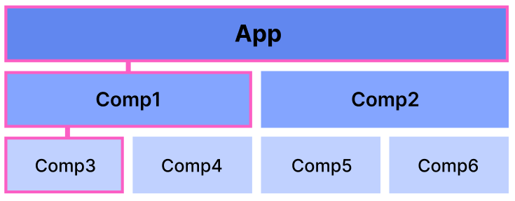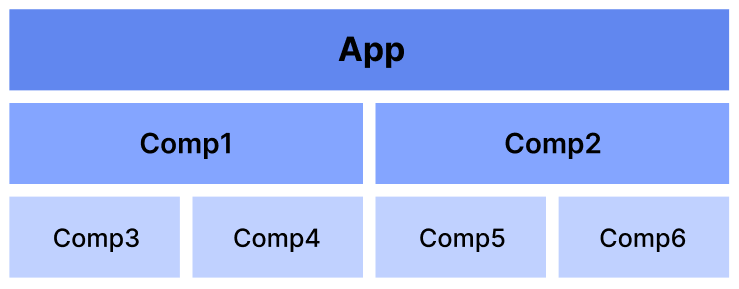 일반적으로 애플리케이션을 구성할 때는 다음과 같이 최상단의 App 컴포넌트부터 시작해 하위 컴포넌트를 포함시키는 구조를 사용합니다.