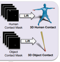 - $C^H_i, C^O_j$ : i 번째 인간 mesh vertex의 접촉 여부, j 번째 물체 mesh vertex 의 접촉 여부