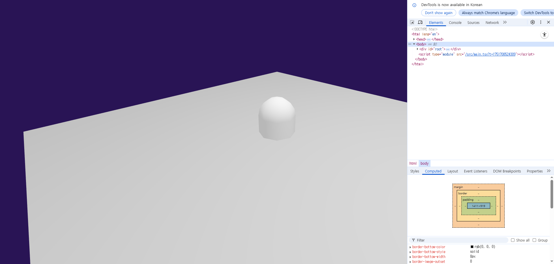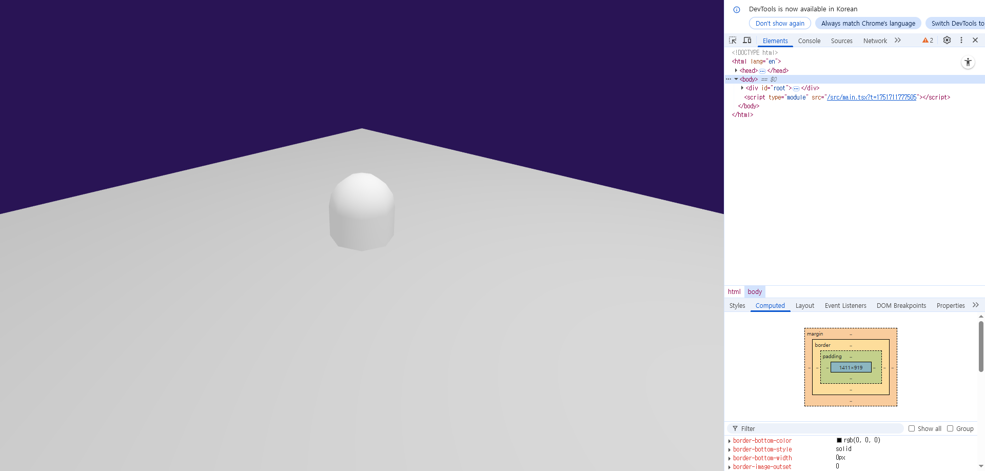 아무 이벤트도 설정하지 않고 three.js의 캔버스를 랜더링하면,