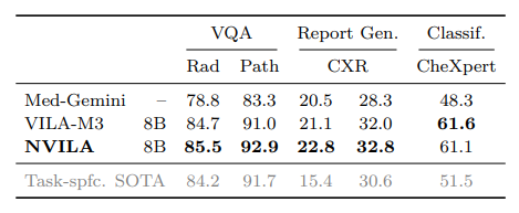실제로 성능을 시험했을 때, NVILA는 training cost는 1.9-5.1✕, prefilling latency는 1.6-2.2✕, 그리고 decoding latency는 1.2-2.8✕의 성능 향상을 기록했다고 합니다.
