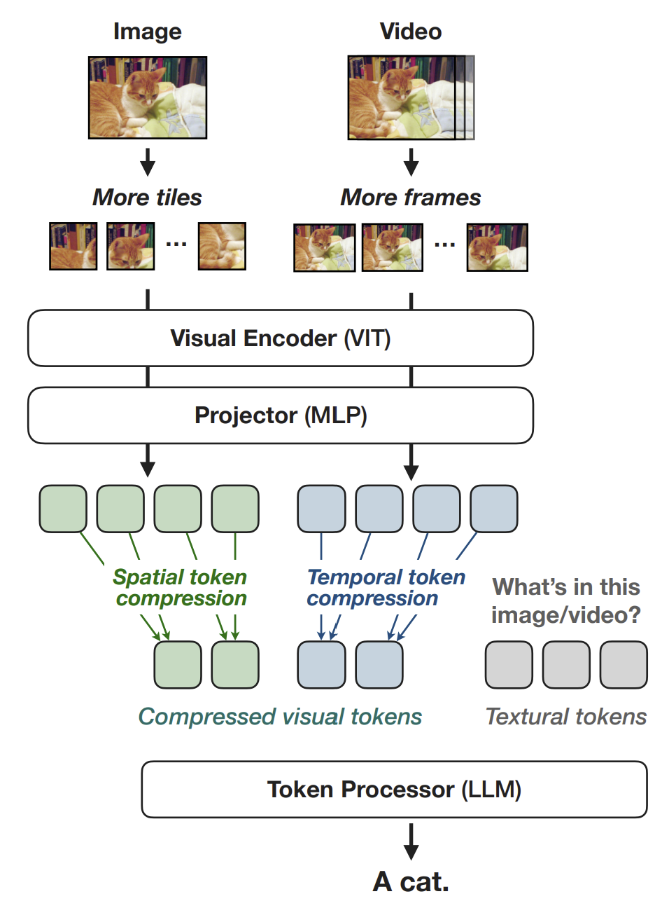 참고로 spatial token compression에서는 이것 말고도 다양한 방법이 있다고 합니다. 하지만 모두 이 간단한 STC 모델보다는 뛰어난 성능을 보이지 못했는데, 이에 대해서는 본 연구에서 자세히 다루지 않았습니다.