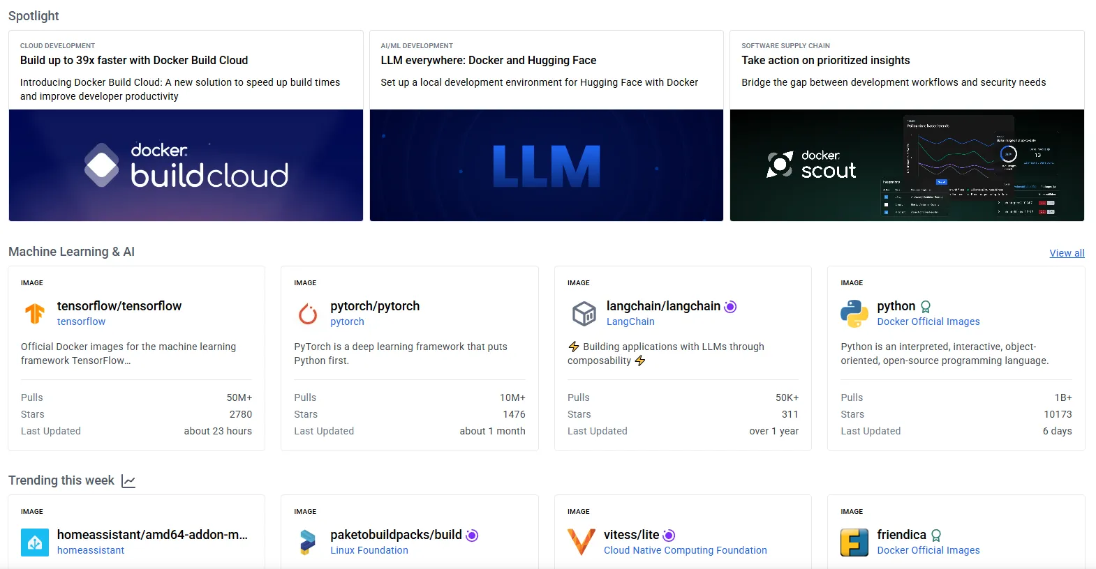 Docker의 강력한 점 중 하나는 사용자들이 만든 이미지 파일을 손쉽게 공유하고 내려받아 곧바로 컨테이너 환경을 구성할 수 있다는 것입니다. Docker Hub는 사용자가 이미지파일을 업로드하거나 내려받을 수 있는 클라우드 기반의 저장소 플랫폼입니다. 말 그대로 중앙 허브 역할을 하기 때문에, Docker 환경에서 애플리케이션을 더 쉽게 빌드, 배포 및 실행할 수 있습니다.
