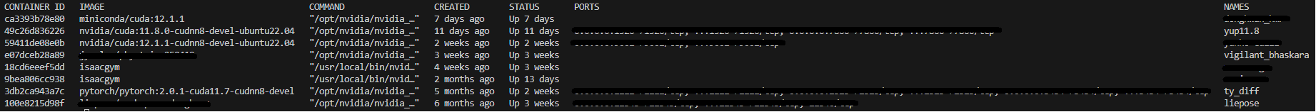 | --gpus | 컨테이너에 할당할 GPU의 ID | --gpus '"device=n"' | nvidia-docker2 설치가 필요 |