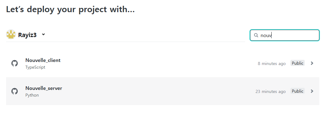 Github와 연동이 되었다면 아래와 같이 Github에 있는 자신의 저장소들을 볼 수 있습니다.