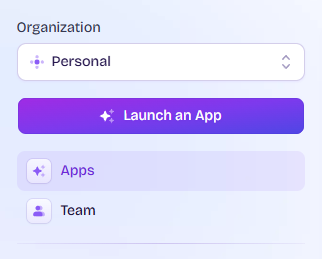 대시보드 메인에서 좌측의 Launch an App을 실행합니다.