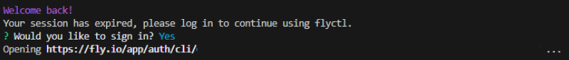 명령어를 실행하면 웹 브라우저를 통해 본인 계정으로 Fly에 로그인을 해야 합니다.