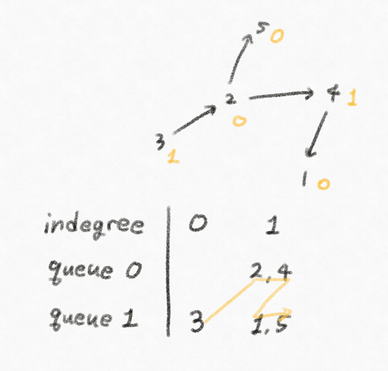 indegree가 0이 되는 섬이 나올 때 마다 queue에 집어넣어주면 됩니다.