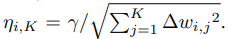 $\eta_{i, K}$ : iteration K에서 i번째 매개변수에 대한 learning rate