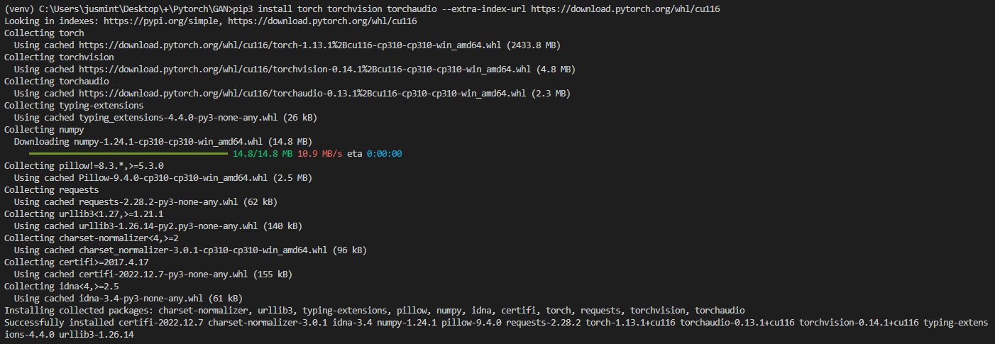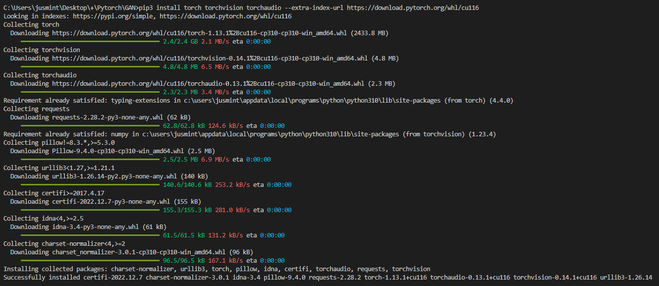 pip3 install torch torchvision torchaudio --extra-index-url https://download.pytorch.org/whl/cu116
