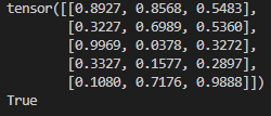텐서의 값은 무작위이기 때문에 같지 않아도 됩니다.