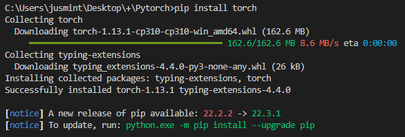 pytorch가 정상적으로 설치되었다면 다음과 같이 출력됩니다.