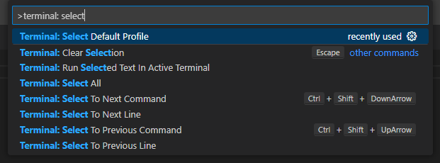Ctrl + Shift + p 를 눌러 명령 팔레트를 열고 Terminal: Select Default Profile 을 검색합니다.