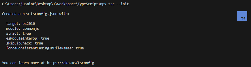 마지막으로 TypeScript의 설정 파일을 생성해줍니다.